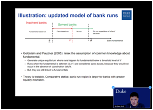 2020年12月23日上午,珞珈经管高端论坛第二十四期通过腾讯会议在线举行。此次论坛主讲人为美国杜克大学富卡商学院会计系Martin L. Black Jr.教授陈旗,论坛主题为“Liquidity transformation and fragility in the US Banking Sector(美国银行业的流动性转型与脆弱性)”。本次论坛由学院副院长李青原教授主持,学院相关师生积极参加了此次在线论坛。