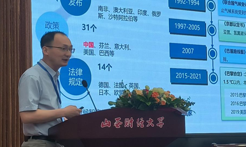 人文社会科学研究院副院长、平台处处长方德斌教授作了题为“双碳战略下电力市场与碳市场协同机制研究”的报告。方教授从双碳战略目标出发,通过电碳市场协同演化的过程,解析电碳市场多主体行为策略。
