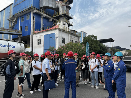 接着在宝武环科三位负责人的带领下,同学们参观了钢渣一次渣的厂房。在作业长的介绍下,同学们了解到宝武环科的钢渣一次处理工艺的原理、效果、环保优势等。在厂房里同学们也感受到了钢铁公司员工的劳动艰辛,正是他们的汗水与劳作为高楼、汽车、桥梁等提供了钢铁等重要物资来源。