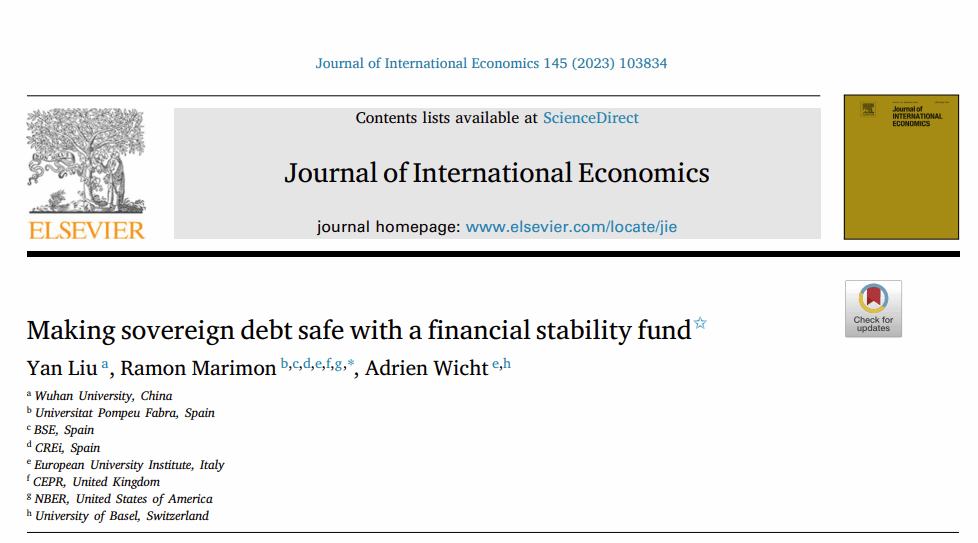 金融系刘岩副教授与欧洲大学学院Ramon Marimon教授、Adrien Wicht博士合作完成的学术论文 “Making Sovereign Debt Safe with a Financial Stability Fund” 在2023年12月于Journal of International Economics上正式发表。该期刊为海棠书屋