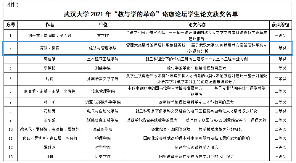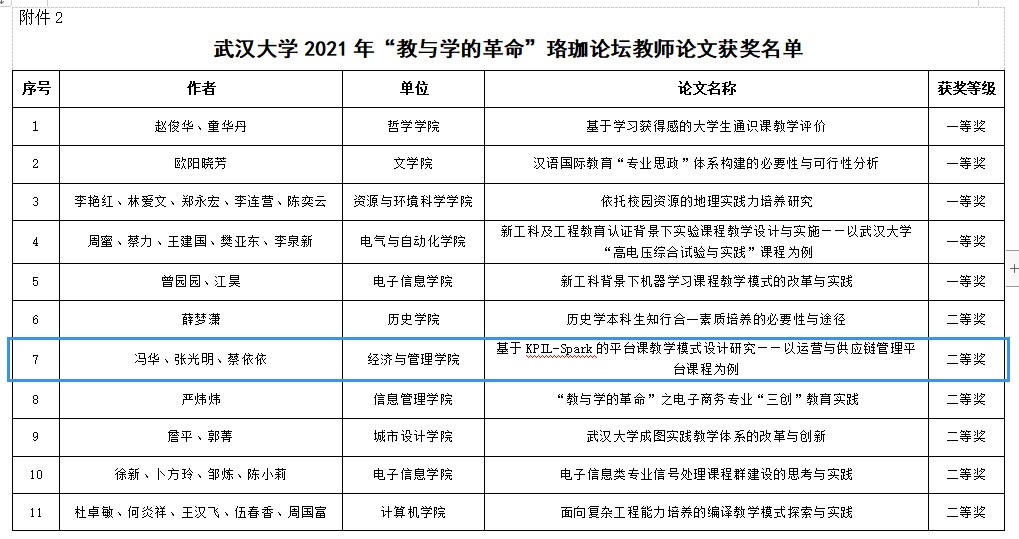 2021年“教与学的革命”珞珈论坛院(系)优秀组织奖及教学论文获奖名单,海棠书屋
