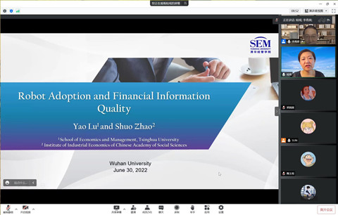 承办的长江论坛第一百五十讲在腾讯会议平台通过线上方式举行。论坛邀请了清华大学经济管理学院金融系教授陆瑶做题为“Robot Adoption and Financial Information Quality”的学术论文报告。论坛由副院长李青原教授主持,学院潘红波等多位老师和学生参加了此次论坛。