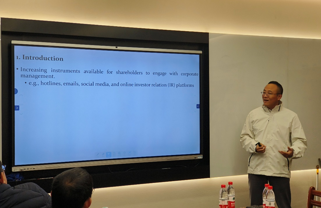 论坛研究主题新颖,实验方法丰富。张教授的报告从个人投资者和公司治理的互动出发,通过一系列严谨实验分组与大量的实验,得出个人投资者的沟通也会对公司治理产生影响的结论,从而肯定了个人投资者在市场中发声的力量。与会师生各抒己见,从专业角度进行了积极交流和热烈讨论。