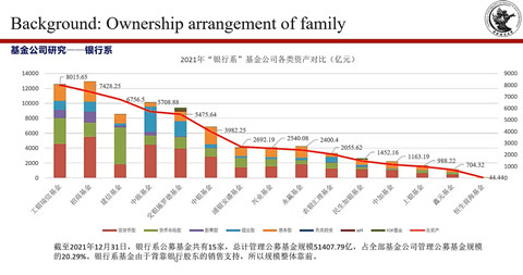 接着,张学勇教授介绍了该研究的动机。中国的银行业发挥着重要作用,中国的金融体系由商业银行体系控制,银行贷款是中国最重要的融资渠道,同时中国拥有世界第二大资本市场,公募基金总额中银行附属基金管理公司管理的占比为24%,且发展潜力巨大。因此研究商业银行附属机构如何影响公募基金的风险承担决策的具有现实意义。