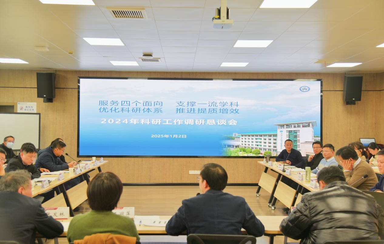 2025年1月2日下午,学院举办2024年科研工作调研恳谈会。校人文社会科学研究院副院长张发林、副处长陈琦,院党委书记王丽萍,院长聂军,党委副书记李好、杨志威,纪委书记谭小林,副院长黄敏学出席会议,系所主任、教师党支部书记、系所副主任及科研与学科建设办公室全体成员参加会议。会议由黄敏学主持。