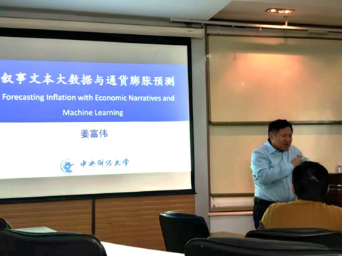 金融系承办的景林珞珈金融论坛第229期在经管院A208举行,中央财经大学姜富伟教授为我校师生带来了题为“基于经济叙事和机器学习预测通货膨胀”的学术报告。讲座由金融系李斌老师主持,20余名师生参会。