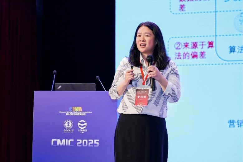 7月5日上午大会主旨报告环节,曾伏娥教授作题为《生成式人工智能的营销偏差》的报告。她强调,在营销实践中,生成式人工智能存在大量营销偏差。对此,学者们需要思考:这种营销偏差的来源是什么?企业该如何实现纠偏?基于此,曾教授介绍小世界偏差、运行规则偏差、符号偏差的具体内涵和表现,指出这三种偏差共同导致生成式AI的营销偏差,并从增强数据、增强运行规则、增强理解三个角度剖析了可行的解决策略,为企业解决生成式AI的营销偏差提供理论指导。