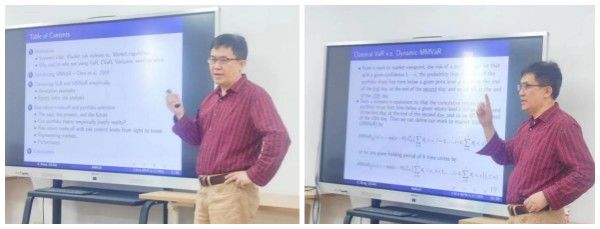 师生带来了题为“The Outperformance of MMVaR in Risk-Return Trade-Off and Portfolio Selection with Comparisons to Other Risk Measures”(MMVaR在风险收益权衡和投资组合选择中的优异表现及与其他风险措施的比较)的学术报告,学院多位师生参加了此次论坛。