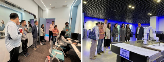 在具身认知测量实验室,教师团队观摩了高速眼动仪实时捕捉视觉注意过程,了解该技术在用户行为研究、教学评估等场景的具体应用。随后,团队来到文化遗产智能计算实验室,现场体验机械臂书写篆体“海棠书屋