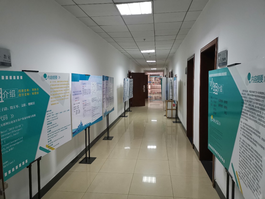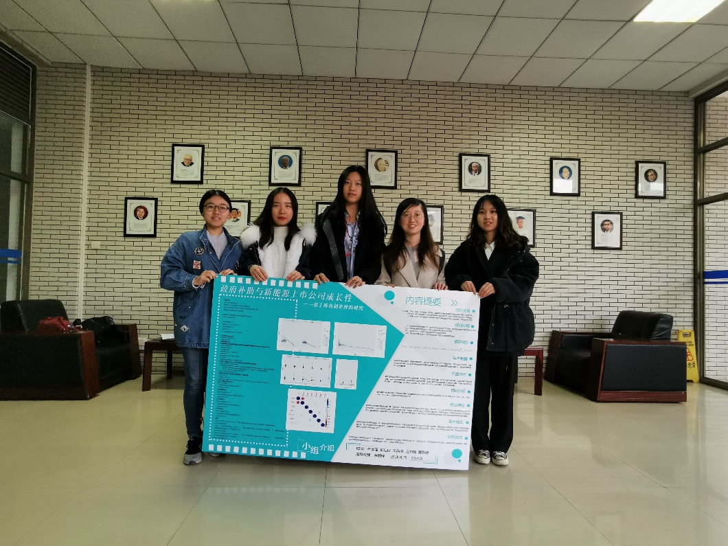 尽管时间紧、任务重,但所有小组均在规定时间内高质量完成了这次“硬核”作业。在团队汇报环节,《数据统计方法》课程组为各团队展板和研究报告成果的展示提供了经费支持。各小组结合展板和PPT内容,从“企业生命周期与股权质押的关系”、“新会计准则实施与资本结构优化调整”、“政府补助与新能源上市公司成长性”、“上市银行资本充足率对客户贷款集中行为的影响”等多个主题进行了精彩纷呈的展示。同学们对标杆文章的把握度、对R语言运用的熟练度、对计量模型的钻研的深刻度得到老师们的一致认可。