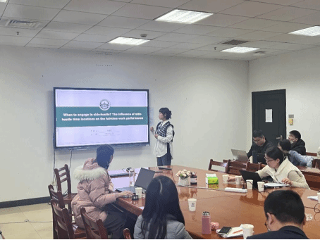 2022级人力资源管理专业硕士研究生孙道明以“什么时候从事副业?副业时间位置对主业绩效的影响”为题,从时间的视角,探讨如何通过更好的规划副业的时间提高主业绩效。点评环节,点评人刘艳教授对中国背景下法律和企业角度是否允许员工做副业、主副业的时间安排是否能完全分开以及资源的冲突与促进等方面表达了疑惑,并建议作者着重思考如何选择控制变量,以剥离出副业对工作绩效的影响;李绍龙副教授从模型的整体性,副业的、难度、复杂度的明确界定等方面为作者提供了完善思路。