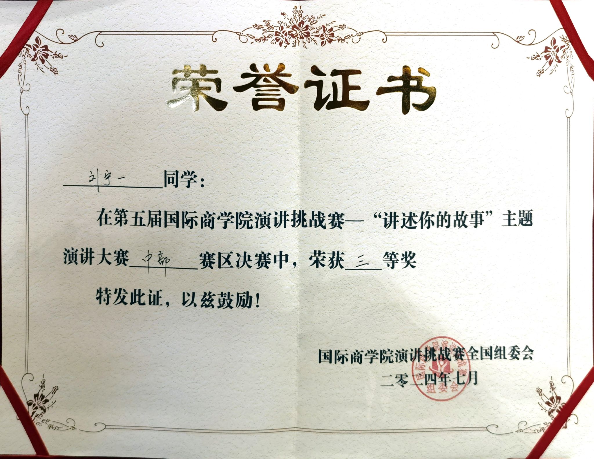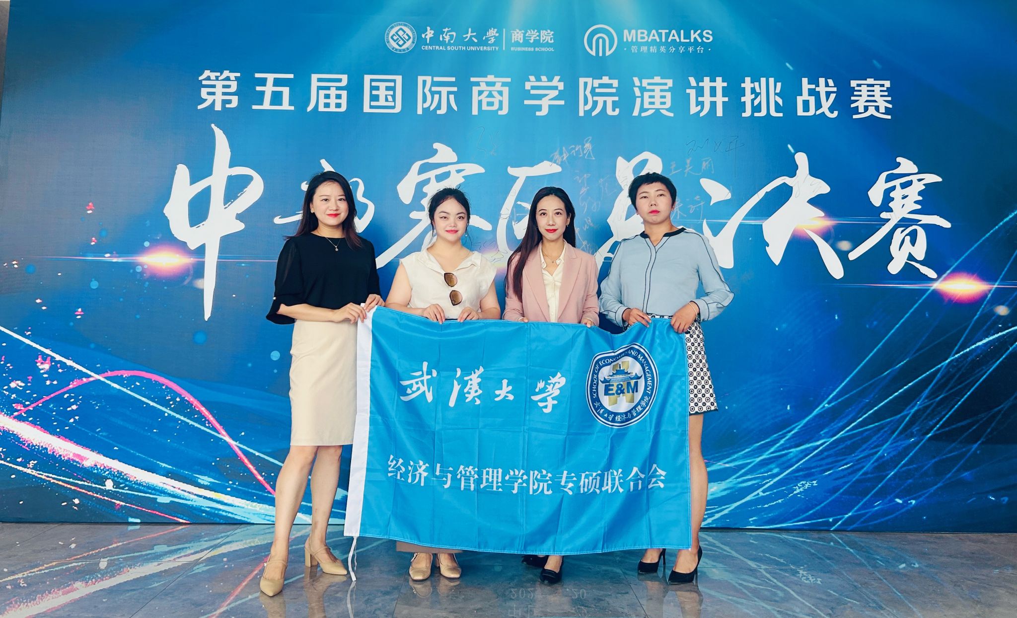 专硕学子再传喜报。由专硕学联会主席2022级MBA专业刘红霞带队,2022级MBA专业张璇、2024级MBA专业吴萍、2022级EMBA专业刘宁一三位同学组成“珞珈之光”队,参加了第五届国际演讲挑战赛,荣膺中部赛区佳绩:晋级团队全国总决赛,同时,刘宁一荣获个人三等奖。创下海棠书屋