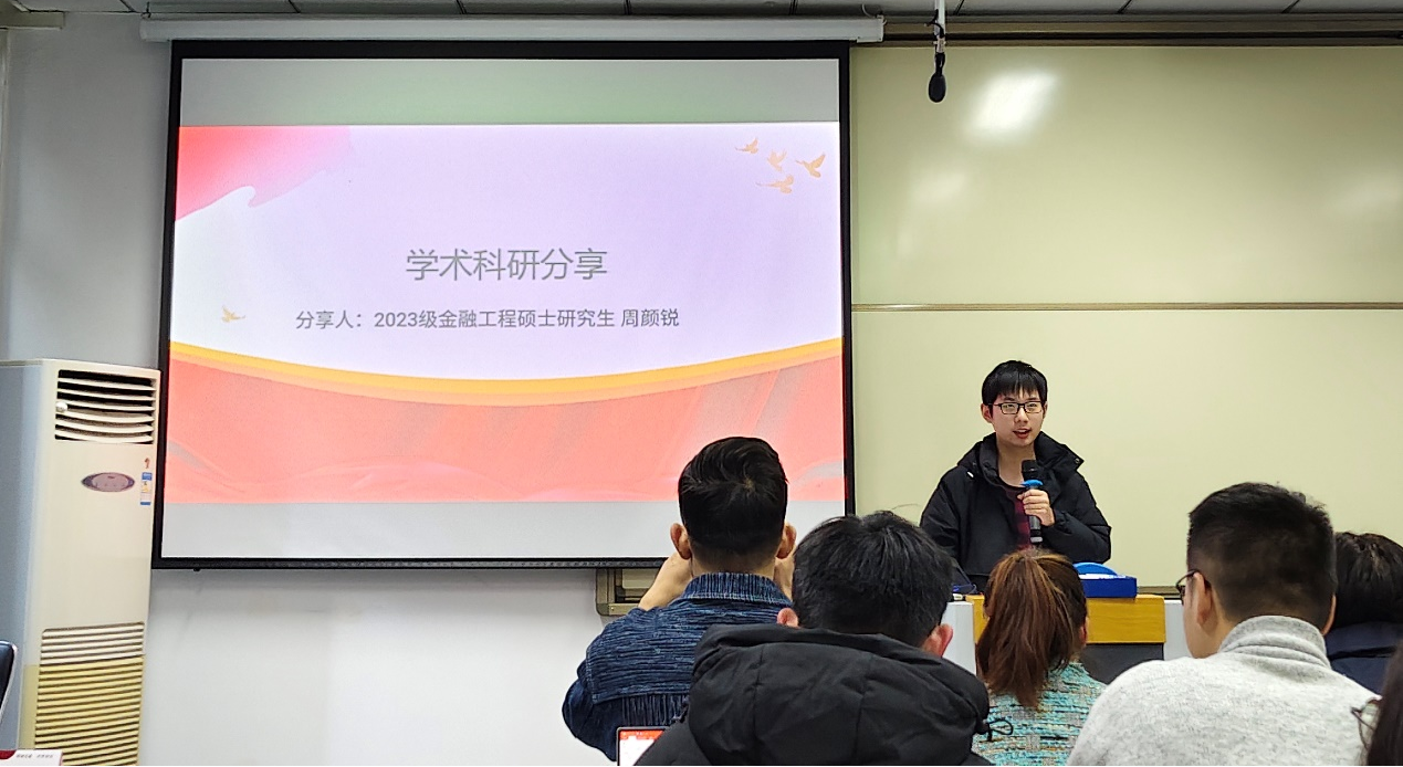 2023级金融工程硕士研究生周颜锐和金融学硕士研究生丁子阳分别分享了他们在学术研究和社会实践方面的经验,为同学们提供了宝贵的学习和实践指导。