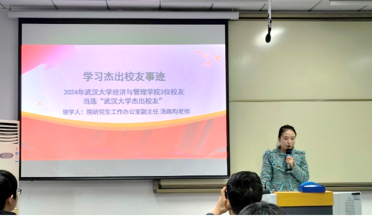 杰出校友的事迹。汤路昀表示,此次光荣获评的三位校友,不仅是师生的榜样,也是学院的荣光,她鼓励同学们赓续珞珈精神,展现珞珈学子的责任与担当。