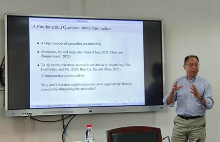 6月11日下午,由金融系主办的景林珞珈金融论坛第246期在学院319顺利举行。北卡罗来纳大学夏洛特分校韩豫峰教授做题为Beta Uncertainty as an Arbitrage Barrier and the Level of Anomaly Returns的学术报告,学院李斌、熊和平、胡婷、聂禾等多位老师和学生参加。刘勇老师主持本次论坛。