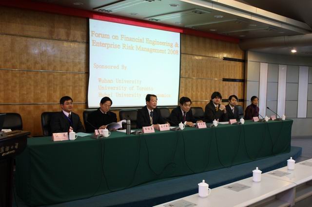 2008年11月27日上午,在全球金融危机仍在蔓延和扩散、中国经济面临困难和抉择的背景下,主办《中加金融工程与全面风险管理论坛》意义重大。与会专家来自于加拿大多伦多大学、美国康奈尔大学、美国德克萨斯大学、加拿大西安大略大学、加拿大曼尼托巴大学、加拿大卡尔加里大学,中南财经政法大学、华中科技大学。