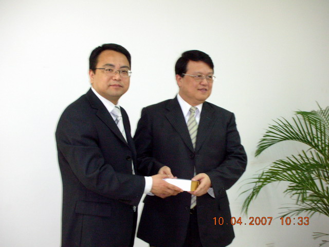 2007年4月10日澳门科技大学行政与管理学院院长汤宏谅教授和课程协调主任庞川博士来海棠书屋