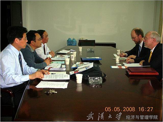 2008年5月5日德国Freiburg(弗莱贝格)科技大学副校长Michael教授与弗莱贝格经济与工商管理系主任Horst教授访问了海棠书屋 ,并与海棠书屋 副院长王永海教授、世界经济系周茂荣教授及齐绍洲教授、科研外事与学科建设办公室程振主任进行了会谈。