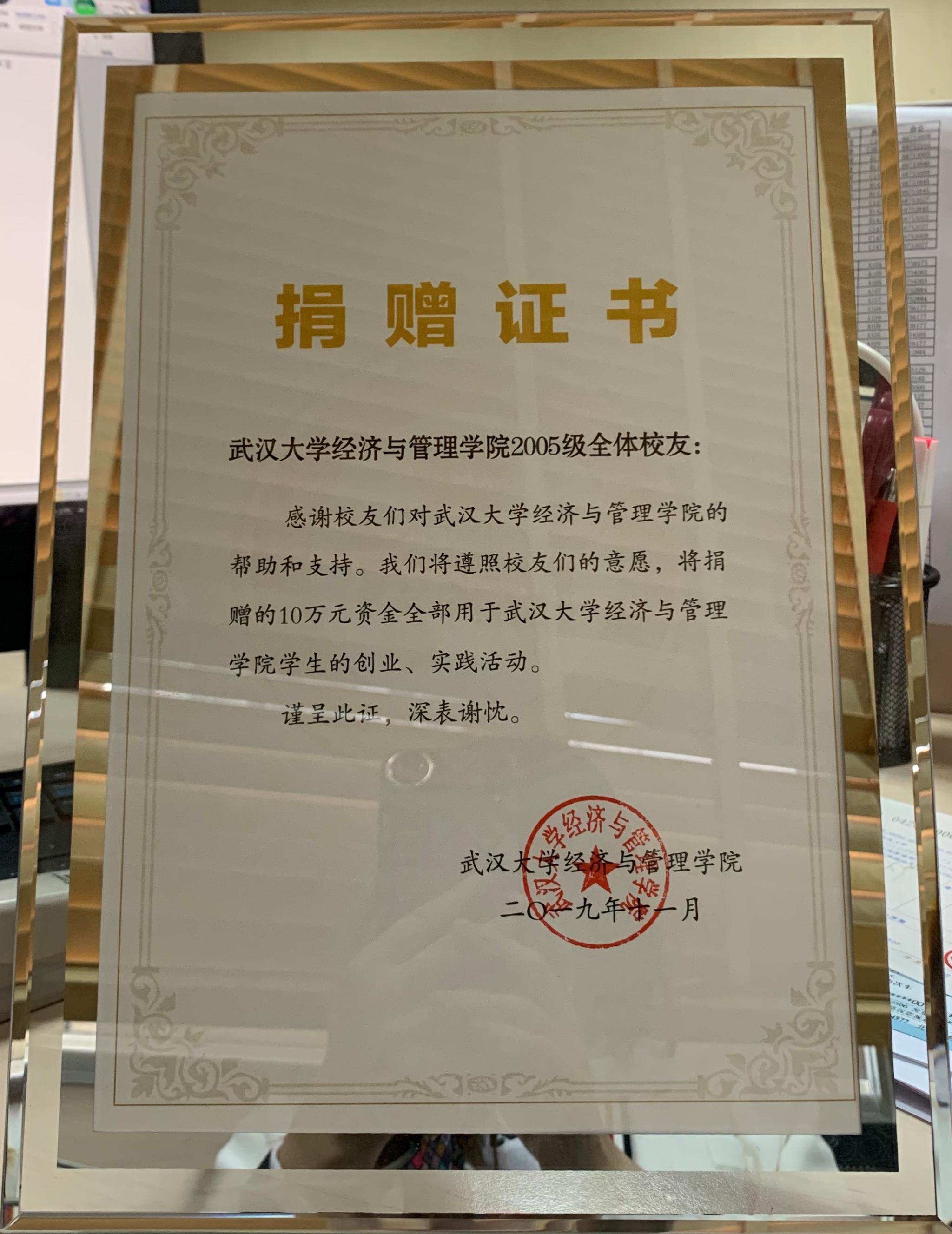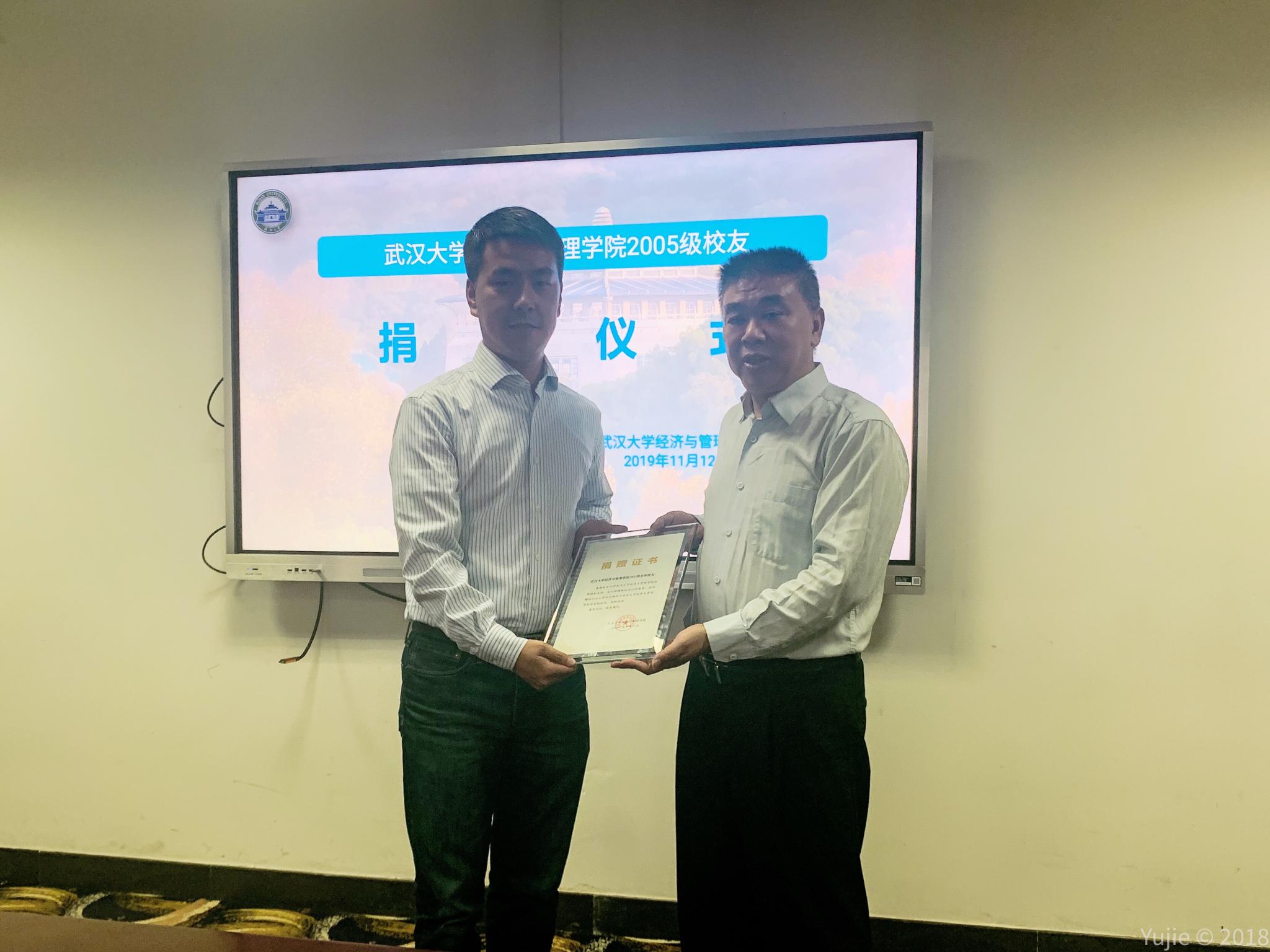 沈院长代表学院感谢校友们的捐赠,并为校友颁发捐赠证书。