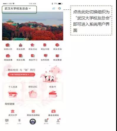 校友总会”,即可进入校友信息系统。
