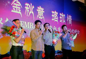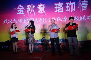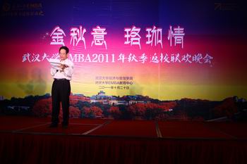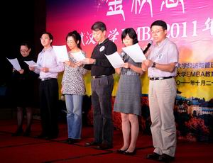 EMBA2011年秋季返校联欢晚会在武汉光谷金盾大酒店举行,参加此次宴会的班级有EMBA2009级昆明班、2010级武汉2班、2011级2班、2011级3班。海棠书屋