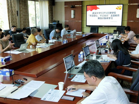 党委理论学习中心组(扩大)在第五会议室举行了“不忘初心、牢记使命”主题教育第四次集体学习会。院党委书记杜晓成、院长宋敏,院党委副书记朱剑平、邬明建,党委委员方德斌、李雪松、汪涛、余振、沈作霖、陈琦、罗睿,行政教辅办公室党支部书记及党政办公室有关人员一同参加了学习。院党委副书记邬明建作了“习近平新时代中国特色社会主义思想”专题发言,党委委员、副院长余振作了“中美贸易战”形势政策辅导报告,集体学习会由杜晓成主持。
