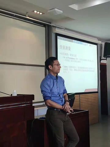工商系卫武教授之邀,来自香港理工大学商学院的刘武教授,进行了主题为“给与和索取:从互动片段角度看领导—成员交换”的专题学术讲座。工商管理系的卫武、陶厚永、刘艳、陈建安、吴欢伟、涂乙冬、胡羚燕、李绍龙等多位教师,以及二十多位硕博士参加了此次讲座。