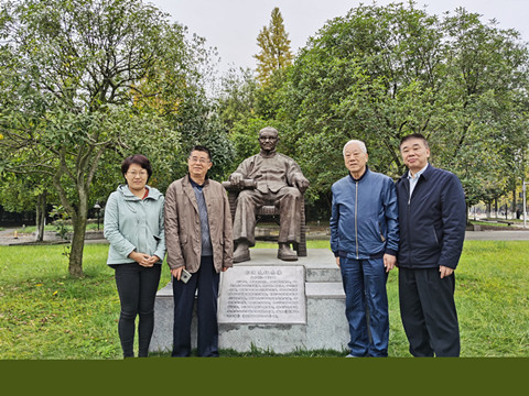 随后,到访人员前往西南财经大学柳林校区参拜经济系老校友彭迪先先生的雕像,进行缅怀。