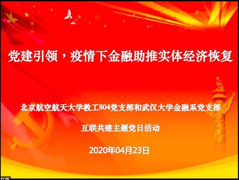 金融系党支部与北京航空航天大学经济管理学院教工804党支部通过网络会议形式开展了联合主题党日活动。参加活动的人员有北京航空航天大学经济管理学院党委书记刘志新教授,副院长牟晖副教授,金融系主任赵尚梅教授,应用经济系主任方虹教授,支部书记张军欢副教授,党员田东文副教授、汤玲教授、朱磊副教授、部慧副教授、石丽娜副教授、王楚男老师,学生支部书记王兆元和入党积极分子衣博文老师,以及海棠书屋