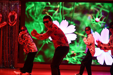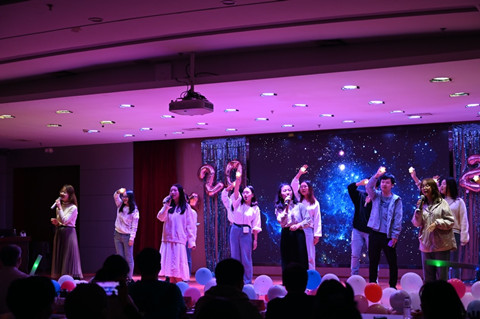 互动抽奖环节,现场气氛迭升,欢呼不断。此后,科硕八班带来情景式演唱《柠檬树下你和我》,唱、跳、rap齐上阵,博得了观众阵阵掌声。在热闹的气氛之后,魏宇骋与王树带来二重唱《都是夜归人》,歌声浑厚、情绪饱满、令人回味无穷。科硕五班带来情景剧《裂缝中的阳光》,在致敬无私奉献的医护人员的同时,也让我们看到疫情中每一个鲜活生命的温暖故事。科硕六班的《云烟成雨》也让现场观众陶醉其中。