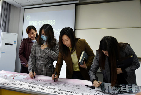 杜晓成传达了学校首场作风建设论坛有关精神,强调作风建设的重要意义和推动学院高质量发展的重要作用。结合学校会议精神,杜晓成向学院行政教辅老师们提出了10项建议:学院发展,事事关己;锤炼本领,提升能力;坚决服从,思想端正;创造条件,保证执行;结果导向,不打折扣;主动沟通,强化协作;依靠团队,以身作则;细节管理,决定成败;时间管理,提高效率;阳光心态,快乐工作。行政教辅老师们必须谨记“想干事、能干事、干成事、不出事”的履职箴言并身体力行,“撸起袖子加油干”,为学院“双一流”建设作出应有贡献。杜晓成进一步强调,作风建设非短短一个月的事情,它应该一直在路上。而行政教辅人员端正作风,做好工作,不仅是敬业的体现,更是服务职能的体现。学院大楼里的每个人都负有育人职责,具有育人功能。要通过服务学生的行为教育学生,推动立德树人工作,为中国特色社会主义事业铸魂育人。