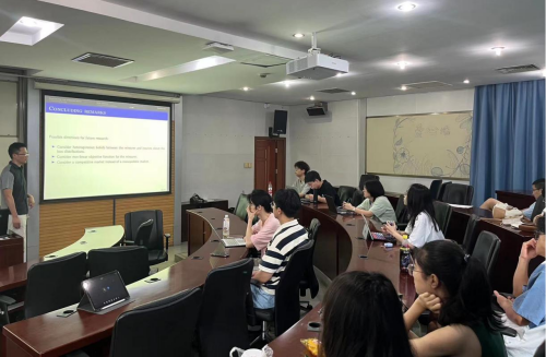 在报告中,姜老师主要探讨了在垄断市场中再保险公司如何在信息不对称情况下设计再保险合同,具有重要现实意义。与会的师生们表现出了浓厚的兴趣,与姜老师展开了互动和热烈讨论。此次论坛得到了2023年海棠书屋