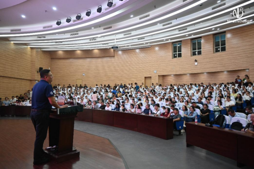 8月25日下午,2023级新生家长见面会在学院景林报告厅举行,学院党委副书记李好,2023级新生辅导员闫丽萍、孙琳子,新生班级助理和500多名新生家长参加活动。
