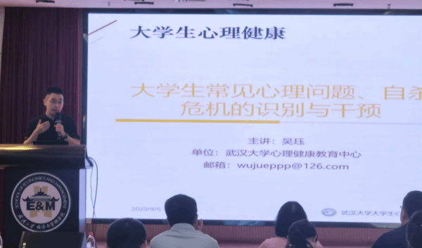 为更好地帮助班级导师了解新时代学生的培养特点,有针对性地开展引导工作,本次培训会邀请了我校大学生心理健康教育中心吴珏老师带来了题为“大学生常见心理问题、自杀危机的识别与干预”的专题辅导。他为老师们详细讲解了危机识别的线索与方法,通过讨论、提问等互动方式,利用案例分析进行现场模拟,帮助老师们加深感受、增强理解,并进一步梳理危机干预的策略与处置流程。