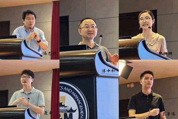 在9月8日的论坛中,新进老师孙君泽老师的研究关注公众投票者缺乏信息可能导致投票结果受到操纵的现象,并在模型中考虑了多样化的发送者偏好,研究发现,对于社会规划者来说,披露全部信息通常不是最佳选择,而媒体竞争可能导致过多的信息披露,从而损害社会福利。此外,社会规划者与关键投票人之间的利益冲突是影响公共信息政策最优性的关键因素。熊瑞驰老师分享了他在中美航空网络扩张背景下企业供应方面的研究课题。这项研究采用了一种新的旅行时间工具,考虑了中美航空市场的监管情况,研究发现,缩短前往中国的旅行时间促进了美国城市企业的创立,尤其在供应链复杂性较高的行业中,这一促进作用更为显著。石越老师介绍了涉及统计估计误差的再制造计划问题。他将再制造规划问题建模为鲁棒的马尔可夫决策过程,并采用高置信度的方法构建包含真实转移概率的模糊集,从而构建了一种基于数据的再制造规划建模框架。廖颖老师介绍了一种高级贝叶斯混合效应隐马尔可夫模型(MHOHMM),用于捕捉患者生理信号中的复杂时间模式,并设计了一种高效的马尔可夫链蒙特卡罗抽样算法,用于对模型进行推断,并通过该模型进行了分类和预测。吕梦老师利用中国A股市场数据,采用堆叠差异中差异(DID)方法,研究了信息披露法规对收益的影响,研究结果表明,信息披露指导的实施增加了市场对财务信息发布的反应,并促进了公司特定信息纳入个别公司的股票回报。