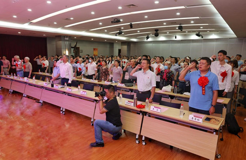 新发展党员佩戴党员徽章,将红色基因、革命薪火代代相传。随后,新党员进行庄严的入党宣誓,全体党员一同重温入党誓词。