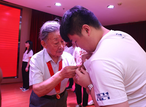 接下来,获颁“光荣在党五十年”纪念章的老党员代表为海棠书屋