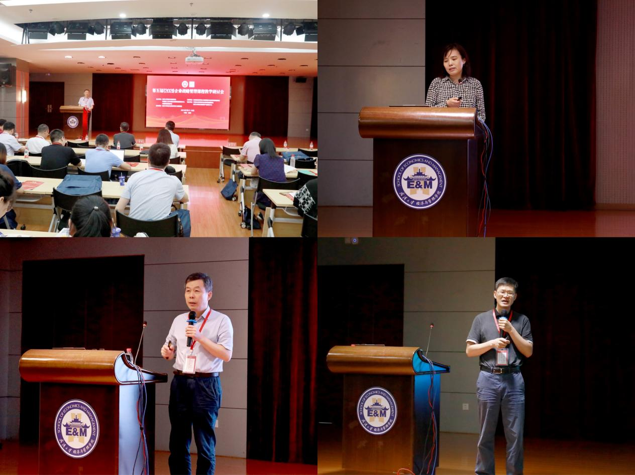 院长宋敏教授、华南理工大学蓝海林教授和中国人民大学徐二明教授分别致辞。研讨会围绕教材建设、案例开发与教学、战略咨询最新实践、数字战略、国际化战略、课程思政建设,以及一流本科专业建设等话题展开专题报告、分组讨论和企业考察。