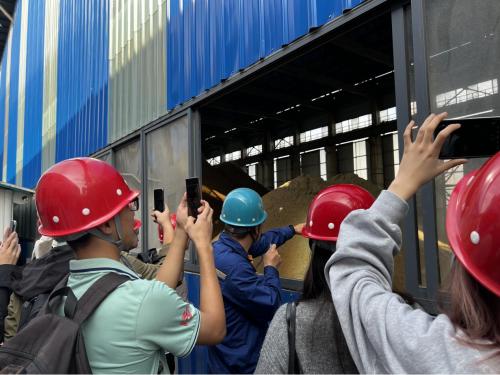 接着在宝武环科三位负责人的带领下,同学们参观了钢渣一次渣的厂房。在作业长的介绍下,同学们了解到宝武环科的钢渣一次处理工艺的原理、效果、环保优势等。在厂房里同学们也感受到了钢铁公司员工的劳动艰辛,正是他们的汗水与劳作为高楼、汽车、桥梁等提供了钢铁等重要物资来源。