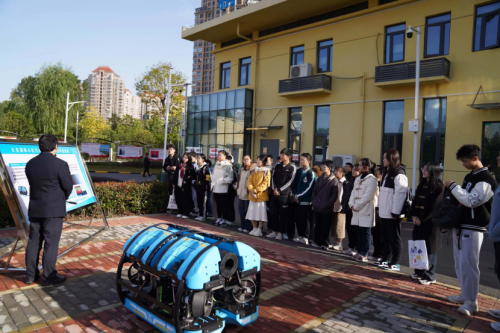科技创新助推绿色发展。以展板介绍为引入,工作人员带领同学们近距离参观深隧水下巡检机器人。机器人可以在高流速、高水压、具有腐蚀性、能见度低的水下环境实现隧道运行状况检测、清淤和修补,帮助深隧保持健康的运行状态。这一自主知识产权产品充分体现出我国在此领域的领先地位,是我国坚持创新驱动发展战略下的突出成果。