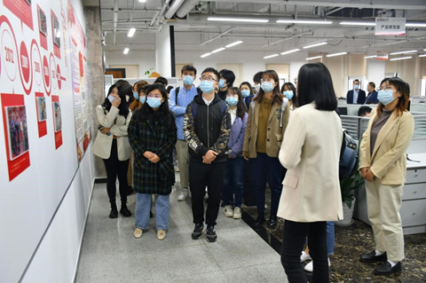 本次企业参访活动主要分为现场教学和座谈交流两个部分。在现场教学环节,企业讲解员龙苗带领同学们来到了企业的展厅和开放式办公室进行介绍。讲解员不仅为同学们介绍了企业大事记、荣誉称号、企业资质及党工团组织,还展示了企业旗下拥有的“起点人事通”、“起点快聘”、“起点灵创”三大核心产品。通过讲解员的介绍,同学们对起点人力的概况有所了解。公司成立以来一直恪守“以人为本,诚信服务”的经营理念,为求职者和用人单位搭建了完善、便利的交流平台,以优质的服务和良好的信誉赢得了社会广泛好评与赞誉。