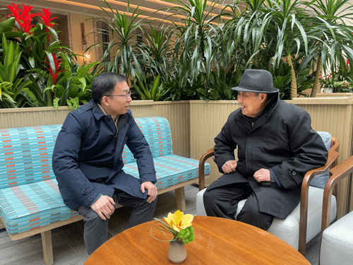 党委书记姜星莉与年近百岁的李守庸老师亲切交谈