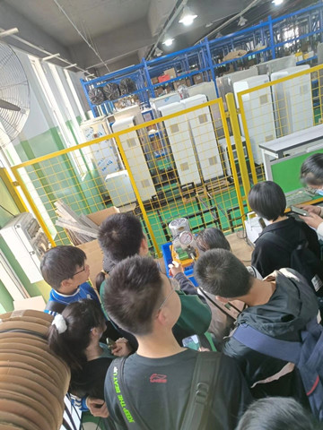 同学们的参观活动分为两部分进行。第一部分是实地参观,由奇力士鄂州工厂周厂长和技术部何总监带队。周厂长除了带领大家参观了泵、水箱、电机等具体部件的生产和特征,以及产品装配之外,还为大家介绍了水务智慧化的发展方向,例如水务中大数据和智能化的应用等,介绍了奇力士在不同类型的组织做过的一些具体项目及其先进性;何总监则主要侧重数字化和信息化部分产品和零部件做了详细介绍。