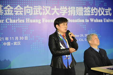 管理学院原院长甘碧群教授接着发言。她表示很高兴看到黄春华校友今日的发展成就,感谢他反馈母校的深厚情怀,祝愿黄春华公司未来蒸蒸日上,祝愿武大经管院发展欣欣向荣!