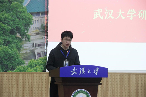 研究生会代表徐高铮同学发言。徐高铮同学代表校研究生会和各兄弟培养单位研究生会向大会的顺利召开致以热烈祝贺,肯定了经管院研究生会过去一年中各方面的成绩,并就研究生会如何在新时代展现新气象、实现新作为分享了自己的学习感悟。