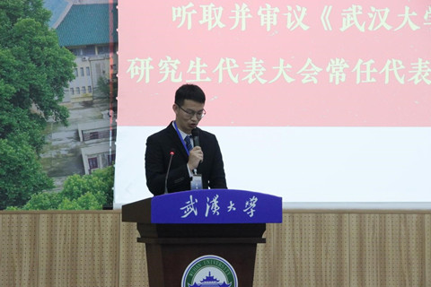 大会筹委会提案组组长宿昕同学作提案报告。报告对上一年度43项立案提案做出简要答复,并从学术科研、实践活动、日常生活、身心健康和实习就业五个方面整理汇报了本次收集的25项提案。