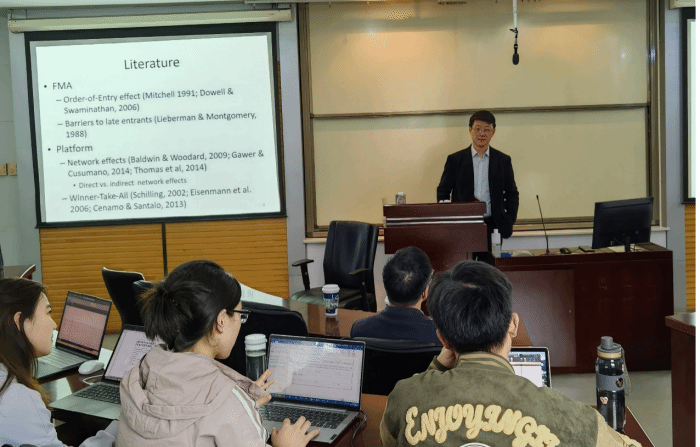 3月22日下午,柯力工商管理学术沙龙第96期在学院举行。来自法国里昂商学院的兰赛副教授为师生们带来了题为“开放平台的价值潜力:先发优势、互补能力和层市场增长”的主题报告。工商管理系涂乙冬教授,江诗松、王罡、周伟副教授等师生参与。
