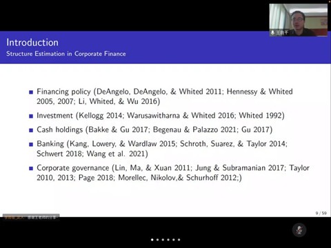 最后,王自干老师介绍了研究的模型,其研究团队构建了一个包含碳税的关于企业绿色投资和现金管理的内生局部均衡模型(partial equilibrium model)。在这个模型中,公司会用两种投资进行生产,包括绿色投资和传统投资,实际情况中,只有两者加总的数据可以直接获得。研究利用只进行绿色投资的企业数据,推导出关键参数的大小,然后通过间接的方法反推出传统投资,进而可通过总投资减去传统投资得到绿色投资规模。研究同时使用实际数据和模拟矩方法(simulated method of moments)对模型进行校准(calibration)和估计,求得在不同碳税税率下企业价值最大化的绿色投资和现金水平。整场讲座内容新颖有深度,不仅介绍了碳成本领域的最新研究进展,而且也为企业绿色投资策略提供了有价值的参考。