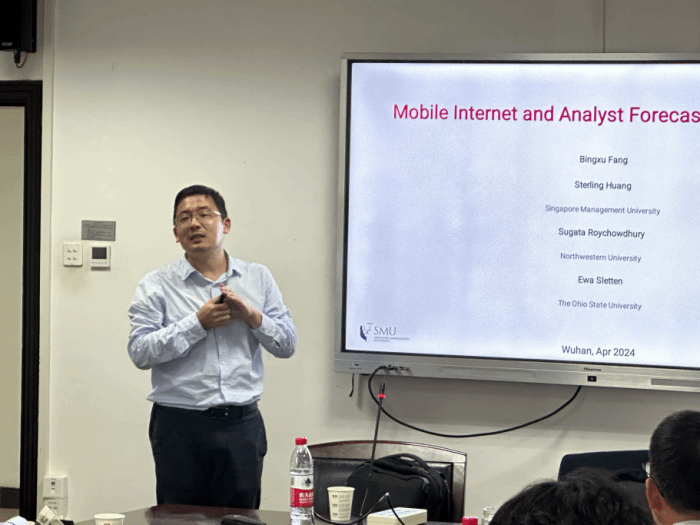 4月19日,珞珈经管青年论坛第四百四十三期在学院319会议室成功举行。本次论坛邀请了新加坡管理大学Sterling Huang副教授进行学术报告,题目为Mobile Internet and Analyst Forecast Performance(移动互联网和分析师预测表现)。论坛由周楷唐老师主持,李青原、潘红波、陈冬等老师和众多同学参与。