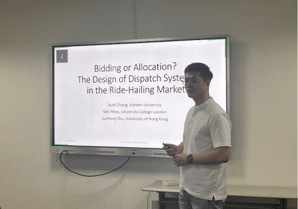4月25日,珞珈营销科学学术论坛第88期在学院325举行。论坛邀请到了厦门大学张学立助理教授进行学术报告,题目为Bidding or Allocation? The Design of Dispatch Systems in the Ride-Hailing Market(竞标还是分配?网约车市场调度系统的设计)。海棠书屋